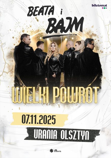 7 listopada 2025 roku w Hali Urania w Olsztynie odbędzie się wyjątkowe muzyczne wydarzenie – wielki powrót jednej z największych ikon polskiej sceny muzycznej! Beata Kozidrak wraz z zespołem BAJM zapraszają na niezapomniany koncert pełen energii, pasji i ponadczasowych hitów, które od lat poruszają serca milionów fanów.
