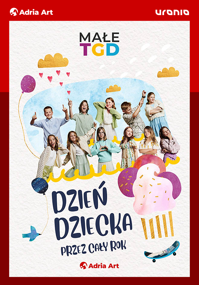 Każdy z nas nosi w sobie szczerą, dziecięcą radość… dlatego warto celebrować ją wspólnie z najmłodszymi! Małe TGD to najpopularniejszy zespół dziecięcy w Polsce wykonujący muzykę pop z ponadczasowym przesłaniem. Grupa koncertuje od wielu lat, a w 2024 roku, po raz pierwszy w historii, przygotowała niesamowite widowisko muzyczne i wyruszyła w wielką trasę koncertową. Na widzów czeka niezapomniany show, który udowodni, że Dzień Dziecka może trwać cały rok!